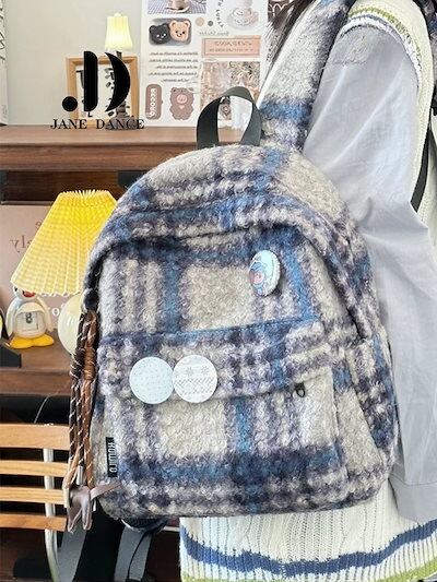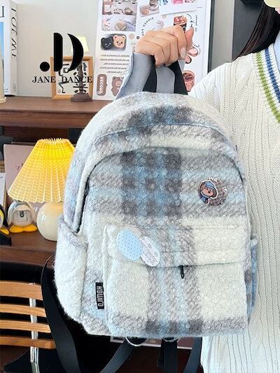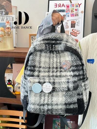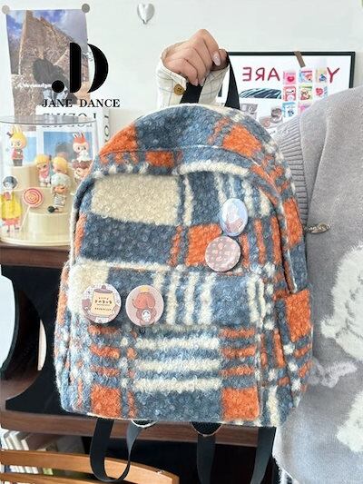 チェック柄ヴィンテージツイードカレッジショルダーバッグブックバッグ市松模様軽量旅行通勤バックパックリュックリュックサック 大容量 リュック リュック レディース 韓国 リュック 旅行バッグ メカ割 | koookooo
