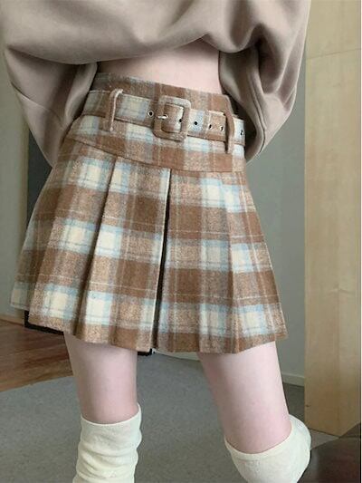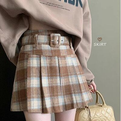 2024秋冬 スカート ミニ丈 ハイウエスト暖かいウール生地高校生 学生 脚長効果 美脚効果細見え かわいい風 おしゃれ ボトムスフレンチ 甘め カジュアル春黒白韓国系ファッションレディースお出かけ | koookooo