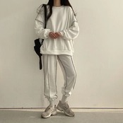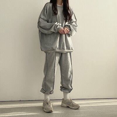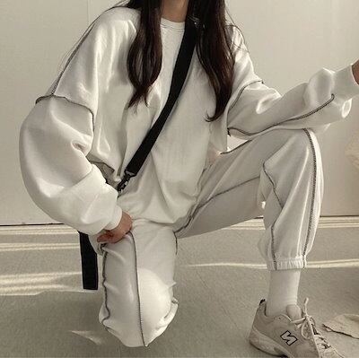 短?期 秋冬 2点セット 長袖トレーナーロングパンツレディースかわいい きれいめ サイズ 大人可愛いゆったりファッション系コーデ衣装丈上下シルエットブル