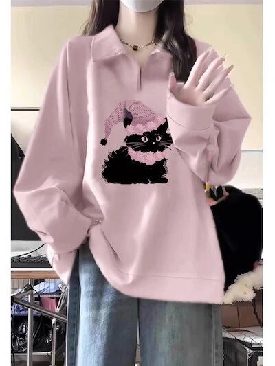 2024 秋冬 トップス長袖 かわいいプリントK-POPTロングレディース韓国風衣装カラールーズゆったりカジュアルハーフおしゃれサイズスリーブシルエットファッション系サイドシャツ学生通学ガーリー | koookooo