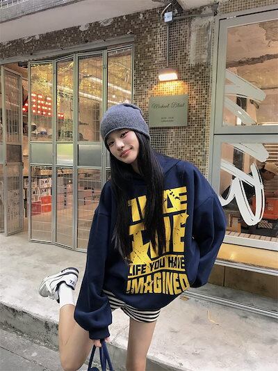 2024秋冬トップス 普段使い 韓国風長袖レトロパーカーカジュアルルーズファッション系ゆったり大人っぽかわいいレディースフード付き羽織りサイズきれいめシルエットトレーナー 大学生通学高校 | koookooo