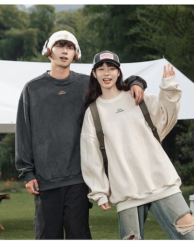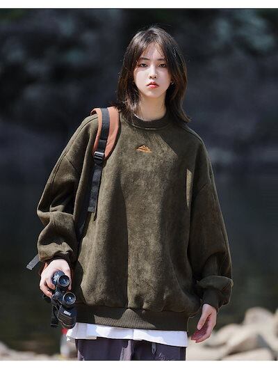 2024 秋冬ユニセックス スエード スウェット 刺繍 ロゴ トレーナー オーバーサイズ 長袖 ルーズ カジュアル 韓国ファッション メンズ レディース ストリート系ファッション | koookooo