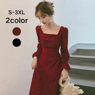 【 3日で出荷 】便利!2wayワンピース結婚式 2024 新作 春夏 気質 長袖 ワンピース ドレス パーティードレス 韓国 ワンピース