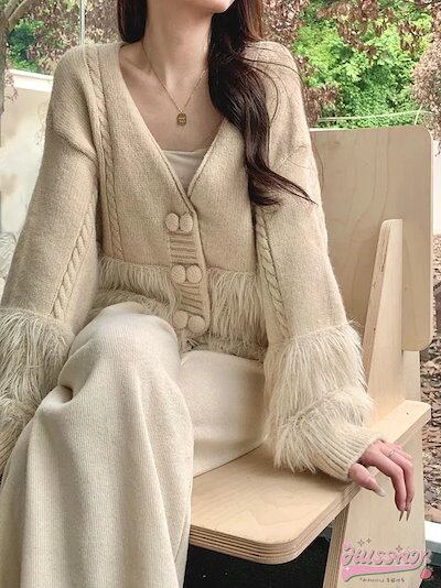 2024秋冬トップスレディースニット長袖 韓国カーディガンショート丈ボタン羽織可愛いおしゃれベージュ甘めフェミニンスタイルアップ色っぽ女っぽカジュアルきれいめ大人上品着回しゆったりフェイクフレンチ | koookooo