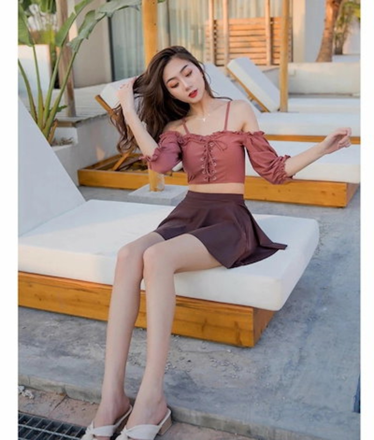 水着 レディース 体型カバー 水着 タンキニ ビキニ 3点セット 10代 20代 30代 ママ水着 スカート バックシャン 可愛い お洒落 オトナ女子 学生 可愛い フリル 小胸 水着 韓国 水着 露 | koookooo