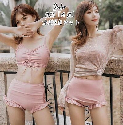 ビキニ 水着レディース 夏 ビキニ3点セット 韓国風 長袖ガウン 日焼け対策 ラッシュガード ボリューム 小胸バンドゥビキニ 40代 セクシー スイムウェア 温泉 「M~XL」みずぎ 新入荷 キレイめ | koookooo