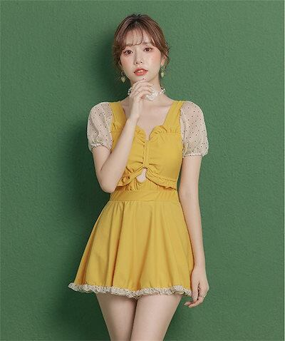 ワンピース水着 水着2点セット レディース 体型カバー水着 「M~XL」透け感 半袖 小胸バンドゥ 40代 オシャレ 着痩せ スイムウェア ママ 人気新作 エレガント キレイめ 韓国風 お洒落 かわい | koookooo