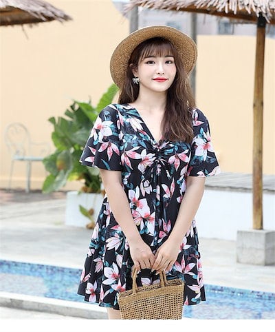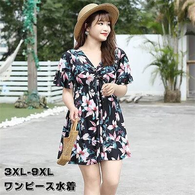 ワンピース水着 大きいサイズ 水着 リゾート 沖縄 レディース 母親 韓国 半袖 痩せ見え 体型カバー ビーチ プール 海 プール ジム 旅行 ママ水着 大人 女性用 30代 40代 50代 | koookooo