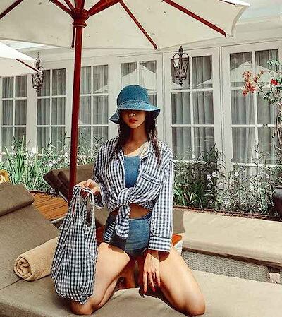 水着 ハイウエスト 体型カバー セパレート ビキニ ハイウエスト バックシャン ワイヤー有り パッド付 レディース かわいい セクシー 韓国風 大人 女性用 デニムブルー