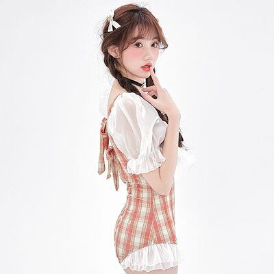 水着 レディース 一体型 チェック柄 ハイウエスト セクシー 可愛い リボン 体型カバー 着痩せ パッド付 かわいい 女性 海水浴 温泉 韓国風