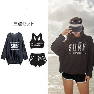 水着 レディース タンキニ 体型カバー 長袖 UVカット セットアップ レギンス 日焼け対策 スポーティ 大人 カジュアル お洒落 韓国風 着痩せ ブラック 20代 30代 40代 海 ビーチ スポー | koookooo