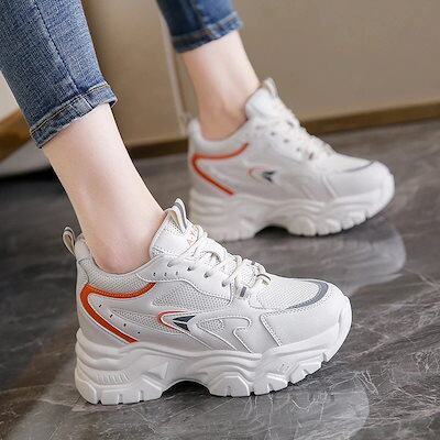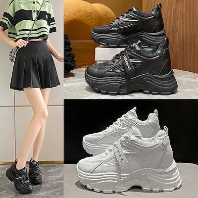 厚底スニーカー レディース 疲れない 黒 白 10cm ダッドスニーカー 厚底靴 インヒール 幅広 かかとなし 韓国 オシャレ 人気 軽量 通学通勤 美脚 歩きやすい 身長アップメガ割 | koookooo
