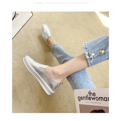 スリッポン レディース スニーカー キラキラ 厚底 グリッター レザー 痛くない ローカット 合皮