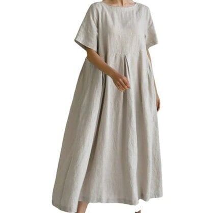大人気!無地綿麻ワンピース【33カラー】Tシャツワンピース半袖マキシ丈 ロングワンピトラップブルー着?せロングスカート気質レディーススカートゆったりUVカット 大きいサイズドレス通勤結婚式卒業式シンプ | koookooo