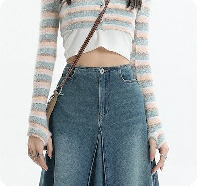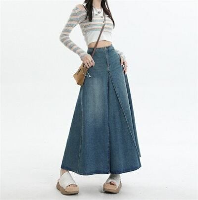 デニムスカート レディース スカート デニム タックスカート タック ロングスカート ボトムス フレアスカート ロング丈 ロング ハイウエスト Aライン マキシ丈 マキシ ポケット 春 | koookooo