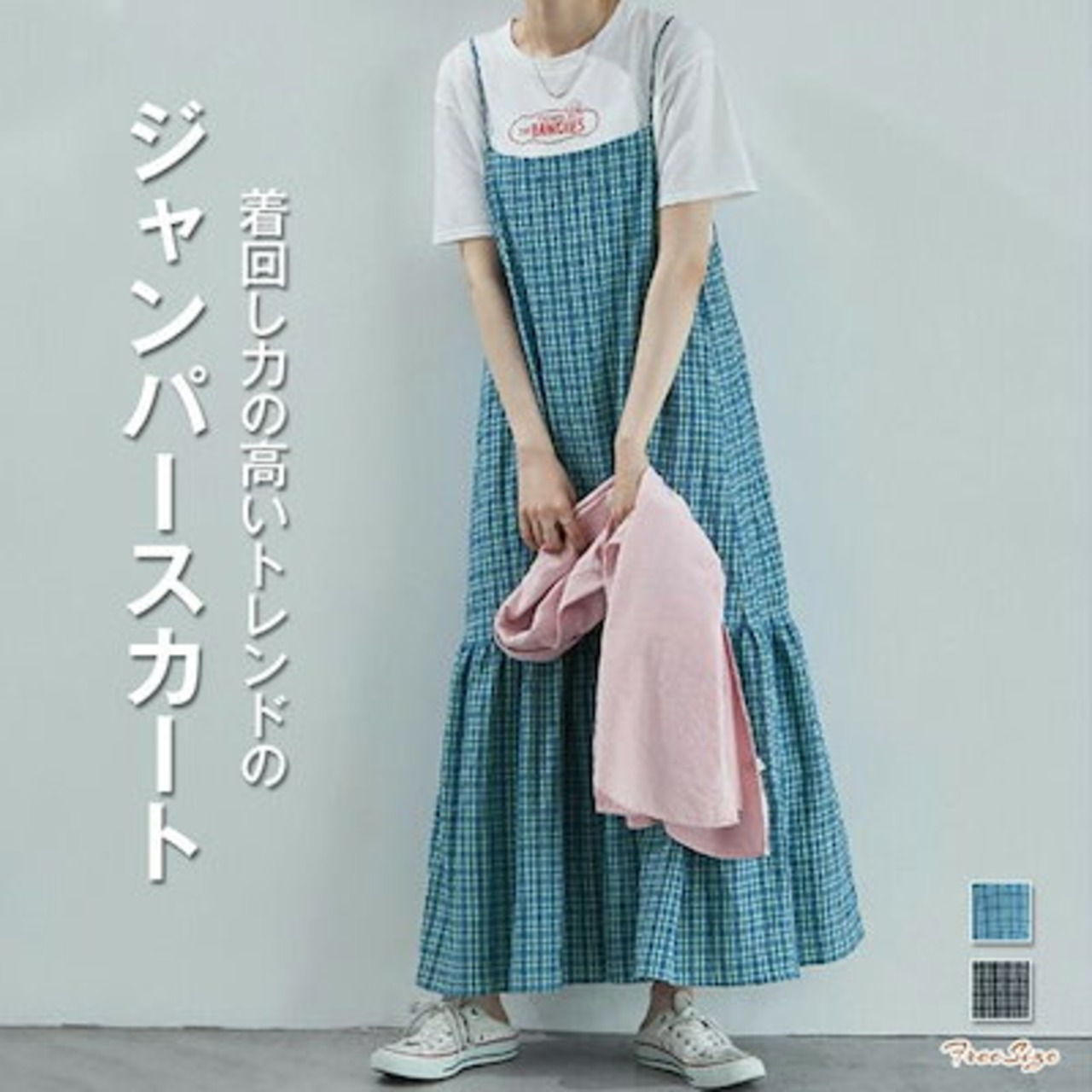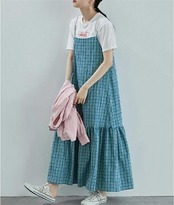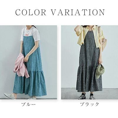 サロペット レディース スカート きれいめ 夏 チェック柄 ロング丈 マキシ丈 オールインワン レイヤード 重ね着 ジャンパースカート 薄手 サロペットワンピース 体型カバー 軽い カジ | koookooo