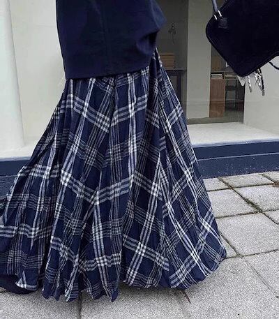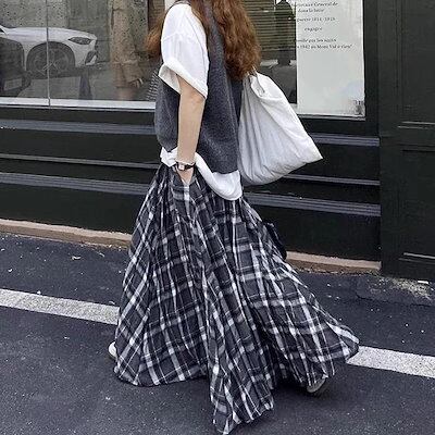 チェック柄 スカート レディース ボトムス ロング 柄 チェックスカート ウエストゴム ポケット付き ゆったり きれいめ シンプル 薄手 体型カバー 大きめ ロングスカート マキシ丈 | koookooo
