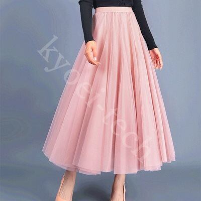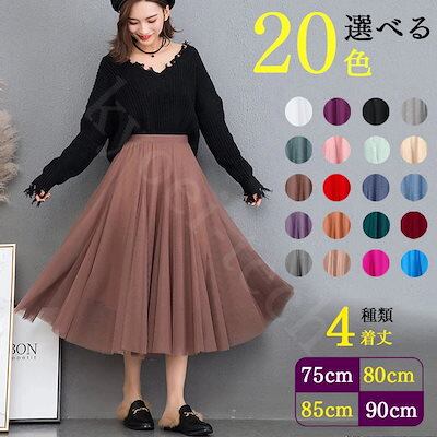 お洒落 裏地付き カジュアル ロングスカート マキシ丈 フレア レディース お出掛け 【2枚100円OFF】チュールスカート ボリューム 大人可愛い チュール ボトムス 4種類着丈 ウエストゴム | koookooo