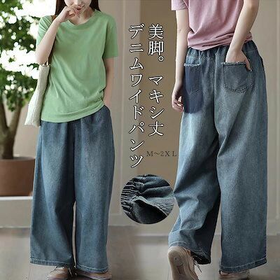 ワイドパンツ デニム パンツ レディース ワイド デニムパンツ 春 夏 ガウチョパンツ ロング マキシ丈 ガウチョ パンツ スカーチョ ボトムス 大きいサイズ スカート ロングパンツ ハイウエスト ウ | koookooo