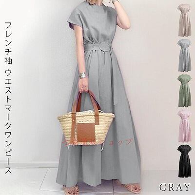 レディース 春 夏 春夏 黒 ロングマキシ Aライン フレア 半袖 きれいめ フレア マキシ丈 ゆったり 体型カバー