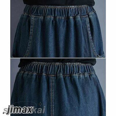 デニムスカート レディース ロング丈 ランタンスカート マキシ丈 ユーズド加工 無地 バルーン 美脚 ウェストゴム カジュアル おしゃれ 体型カバー 春 夏 秋 冬 30代 ウエストゴム 美脚 大人