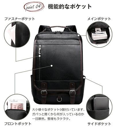 コストパフォーマンスリュック メンズ ビジネス リュックサック レディース ビジネスリュック ビジネスバッグ 大容量 撥水 PU レザー バックパック ポケット 多い 多収納 PC収納 PCパック a | koookooo