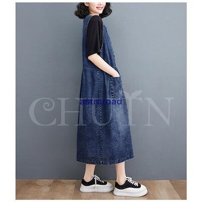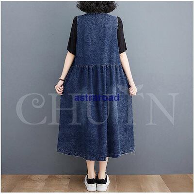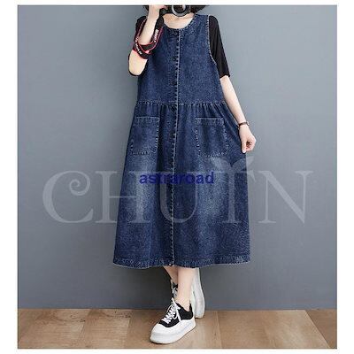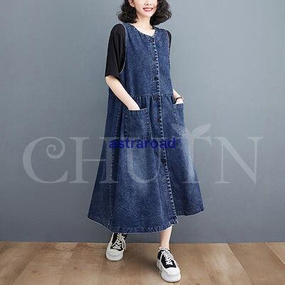 本日限定 2枚購入で150円OFF デニムジャンパースカート ロング デニムワンピース レディース ノースリーブワンピース 丸首 Aライン 春 夏 秋 ゆったり 着痩せ 新品追加 送料無料 | koookooo