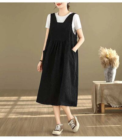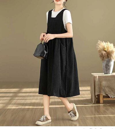 ジャンパースカート 大人 レディース 春夏 秋 ロングワンピース 大きいサイズ コーデュロイワンピ 無地 ミモレ丈 ゆったり 体型カバー 女子 低身長 着回し カジュアル きれいめ ガーリー 森ガール | koookooo