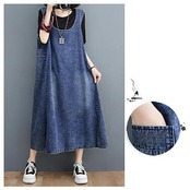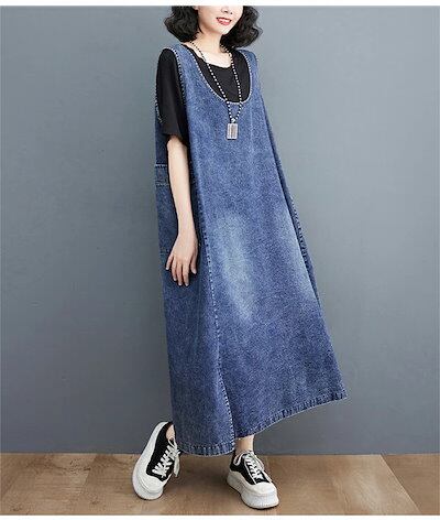 ジャンパースカート レディース 秋冬 サロペット デニム 大きいサイズ デニム ロングワンピース ノースリーブワンピース ミモレ丈 ロングジャンパースカ ポケット付き 重ね着 ゆったり 着痩せ 体型カ | koookooo