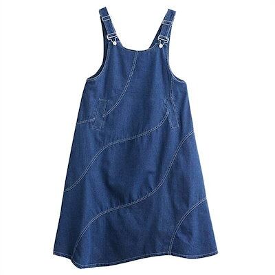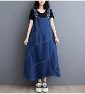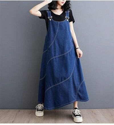 デニムジャンパースカート 春 デニムワンピース レディース 春秋 冬 デニムサロペットスカート 大きいサイズ ロングワンピース ミモレ丈 ゆったり デニムワンピース Aライン 体型カバー 大人女子 カ | koookooo
