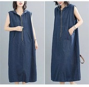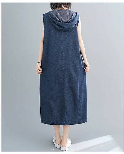 デニムワンピース ノースリーブ フード付き ロングワンピース レディース デニムジャンパースカート ミモレ丈 パーカーワンピース 袖なし レイヤード ワンピ 重ね着 森ガール 大人可愛い ゆったり カ | koookooo