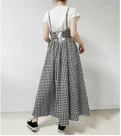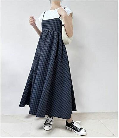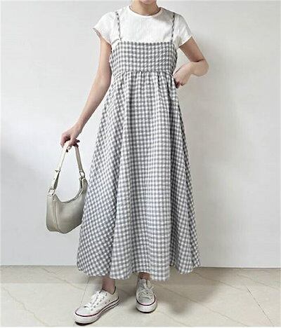 ワンピース キャミワンピース 夏 レディース ジャンパースカート ロングワンピ ギンガムチェック ミモレ丈 きれいめ ロング サロペットスカート フレアワンピース Aライン 大きいサイズ ゆったり | koookooo