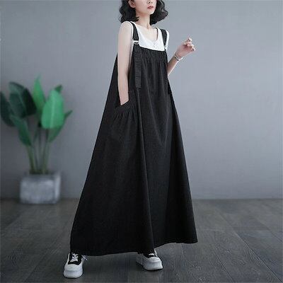 ジャンパースカート デニム レディース ロングワンピース デニム サロペットスカート 大きいサイズ ポケット マキシ丈 無地 春夏秋冬 ゆったり 体型カバー 着?せ 大人可愛い 森ガール カジュアル | koookooo
