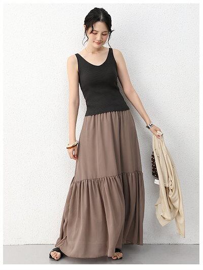 スカート シフォンスカート ティアードスカート レディース ボトムス ロングスカート フレアスカート ふんわり 夏 大きいサイズ ハイウエスト Aライン 涼やか お洒落 ゆったり カジュアル 大人可愛 | koookooo