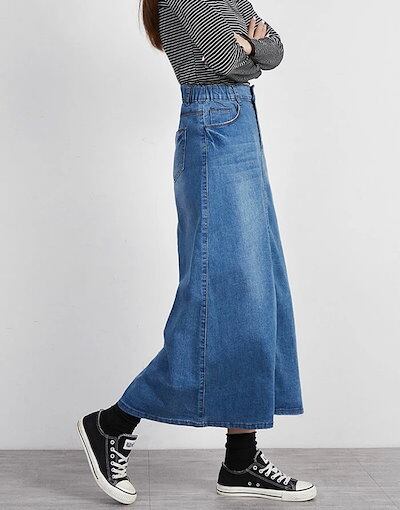 デニムスカート レディース Aライン デニムロングスカート シルエット マキシ丈 デニム ロング スカート カジュアル ジーンズ フレアスカート ゆったり 大きいサイズ フレア 大人 ハイウエスト 無 | koookooo