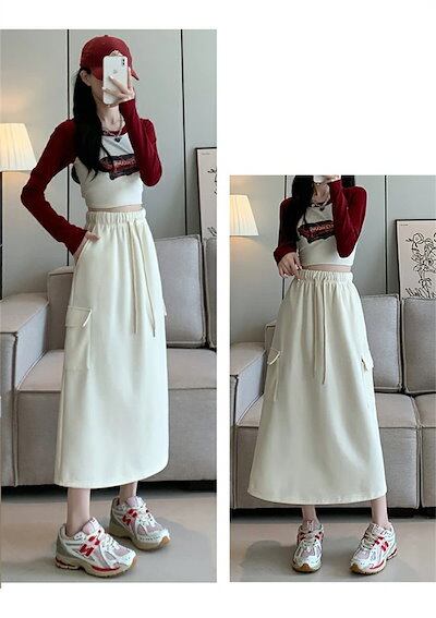 【期間限定特価】スカート 膝下 ロング ハイウエスト レディース スウェットスカート ロングスカート ストレッチ 無地 ウエストゴム ポケット付き ゆったり 大きいサイズ 体型カバー 柔らか 脚長効果 | koookooo