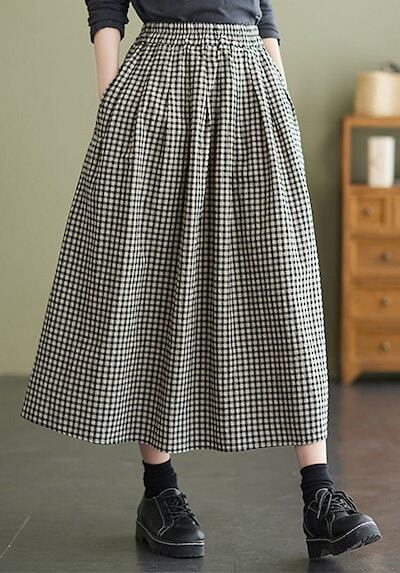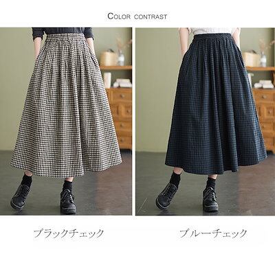 スカート 夏 ロングスカート 綿麻 レディース チェック Aラインスカート チェック柄 スカート フレア ロング スカーチョ レディース ボトムス 春 体型カバー 綿 大きいサイズ ゆったり ポケット | koookooo