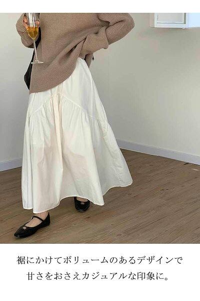 ロングスカート レディース 秋 スカート マキシ丈 ボリューム裾 タック シャーリング 裏地付き ウエストゴム ハイウエスト 無地 ゆったり 体型カバー マキシ丈スカート 大きいサイズ ボトムス ロン | koookooo
