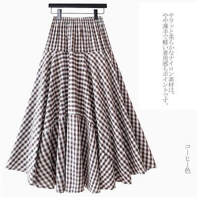 フレアスカート チャック ロングスカート 春新作 レディース ロング丈 マキシスカート ウエストゴム チェックスカート ハイウェスト 大きいサイズ Aラインスカート 大きい裾 ゆったり 可愛い キレイ | koookooo