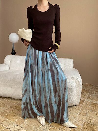 フレアスカート スカート ロングスカート レディース フレア 総柄 柄 マキシ丈 ロング丈 マキシスカート ウエストゴム ボトムス きれいめ ゆったり aライン 裏地 透け感 春 夏 秋 大きいサイズ | koookooo