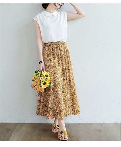 ロングスカート レディース フレアスカート ロング丈 スカート ロング Aライン aラインスカート 体型カバー シフォン 花柄 大きいサイズ マキシ丈 ゆったり ボトムス ウエストゴム 裏地あり 夏 | koookooo