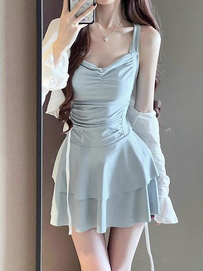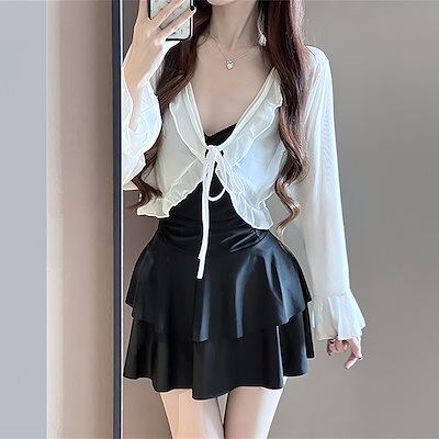 2025新作ホールターネックエロチシズムレディース水着スカート付きワンピース水着ジャケット付き学スパホリデー