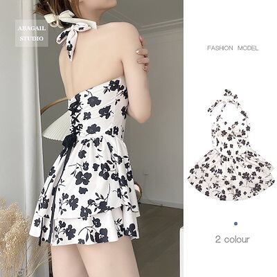2025新作ワンピース水着レディース水着ブラック女テーピング首を吊るハイウエストスパ
