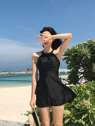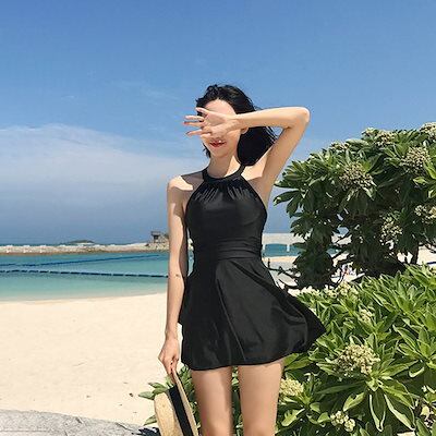 2025新作ワンピースレディース水着スカート付きホールターネックエロチシズムソリッドカラーホリデースパ水着