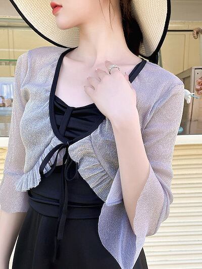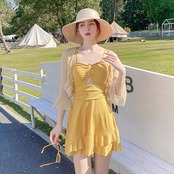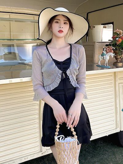 2025新作レディース水着士ツーピースワンピース水着スカート付き泡スパ泳ぐ着