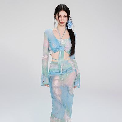 スプリット水着レディース水着フォーピースエロチシズム泡スパ2025新作泳ぐ着