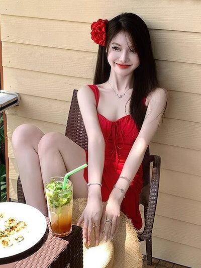 夏2025新作レディース水着春夏シーフロントホリデーレッドスカート付きスパ水着