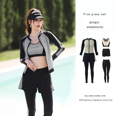【5点セット】2025夏 修学旅行 韓国 水着 ワンピース 水着 ラッシュガード セパレート保守シュノーケリング日焼け止め長袖パンツクラゲスポーツサーフィン 体型カバー レディース 温泉 | koookooo