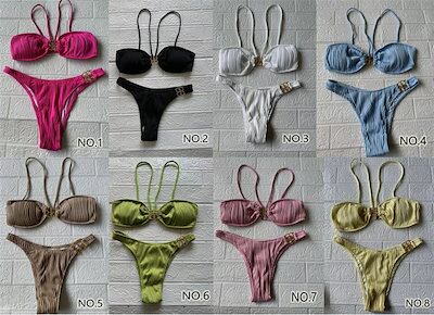 水着 ビキニ レディース セクシー ストラップ 三角トップ 8色 トライアングル ビキニ水着 ホルター 2点セット スイムスーツ メタルアクセサリーのデザイン