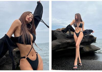る 水着 ビキニ レディース 三角ビキニ ワンピース 紐 ホルターネック パッド付き クロス クロスバンド レースアップ ウエストマーク スリット バックシャン 大人可愛い きれいめ ナチュラル | koookooo